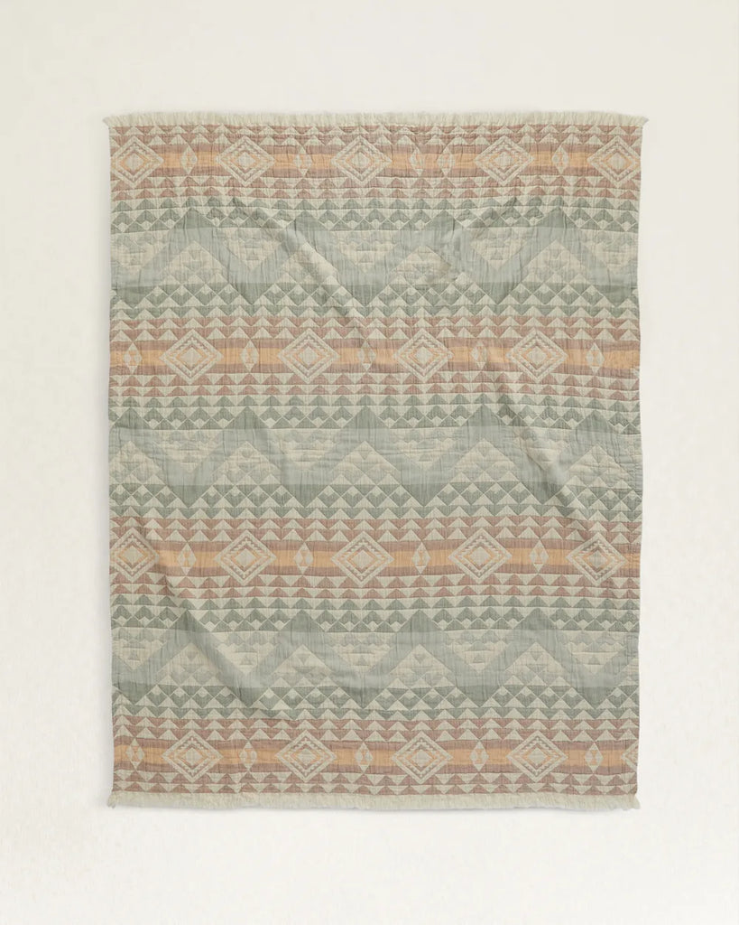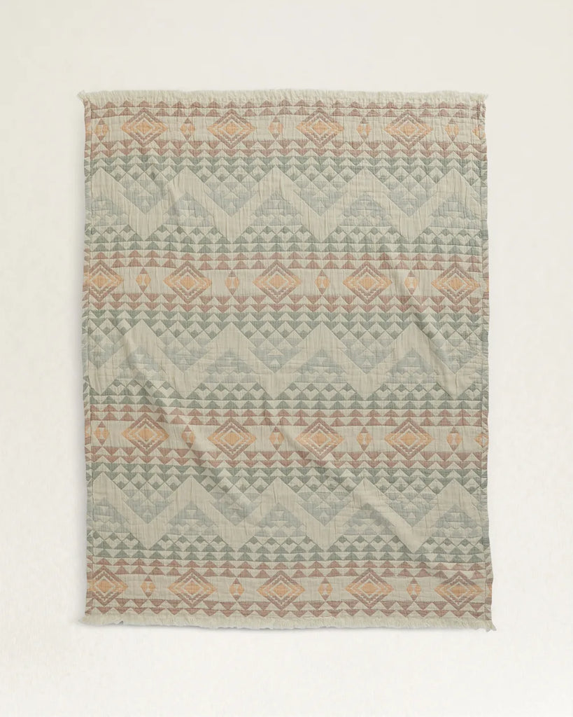 Crafted from soft organic cotton, our newest throw blanket style features exclusive Pendleton patterns and eyelash fringe along the top and bottom edges.